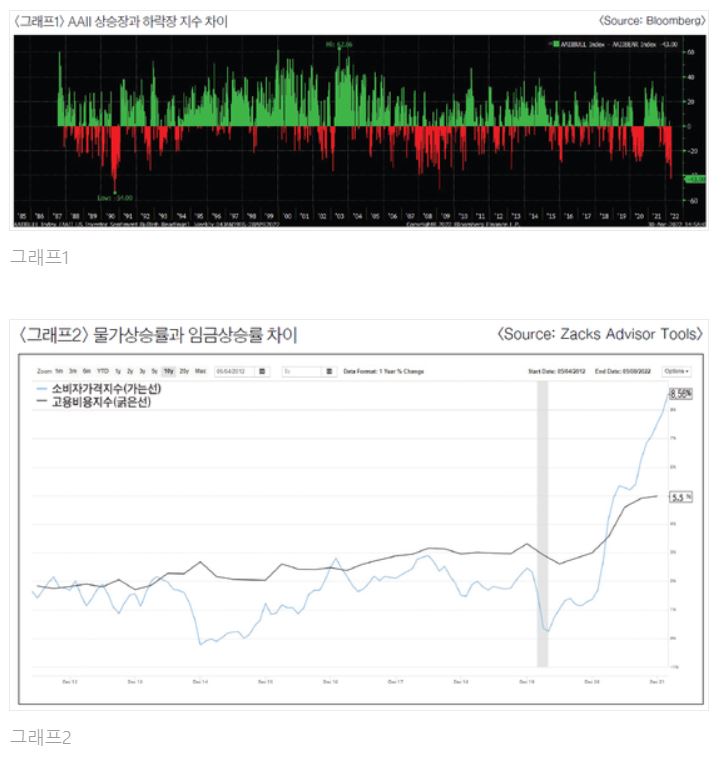 아직까지 임금이 인플레이션이 주는 영향은 적은 상태다. 인플레이션 상승 압박 요인으로 작용하지 않아도 기업 마진 감소, 실적 약세 등으로 이어질 수 있는 가능성은 여전히 열려 있다. 이런 불확실한 변수들 역시 시장 변동성을 높게 하는 요인이다.