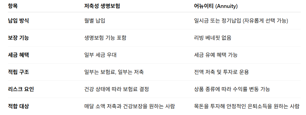 저축성 생명보험과 어뉴이티(Annuity)의 차이점